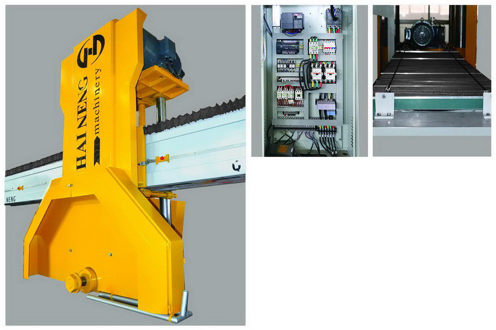 Descente) transmission pour réaliser une élévation et une chute de couteau en douceur et rapidement. Le couteau de marche latéral avec un convertisseur de fréquence peut réaliser un règlement de vitesse infini. Coupe de marche automatique, et spécialement équipée de levage et de bord