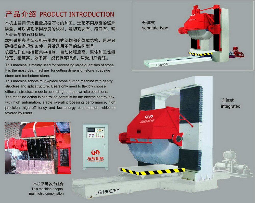 La machine adopte la machine de coupe de Pierre multi-morceaux adopte la structure de type gantic et la structure de type divisé, les utilisateurs doivent seulement selon leurs propres conditions de site, choisir différents modèles de structure de manière flexible