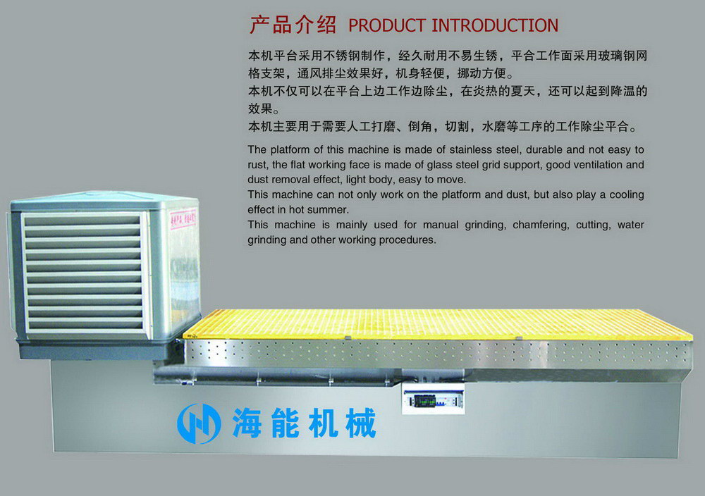 Cette machine est principalement utilisée pour le travail qui nécessite le meulage manuel, le chanfrein, la coupe, le broyage à eau et d’autres processus de dépoussiérage et de nivellement.